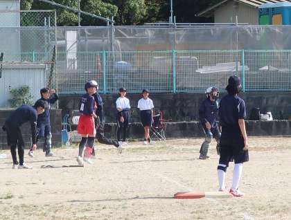 3年生とのお別れ試合が行われていました。夏まで一緒に練習してきた前林中の生徒、両校顧問や地域指導者もチームに入って、たいへん盛り上がった試合になりました。
