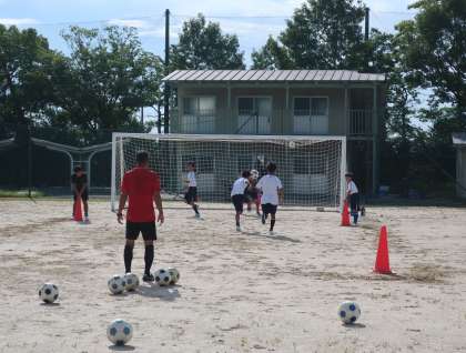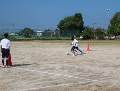 お盆休み明け最初に活動していたサッカー部。休み明けとは思えない切れのある動きとテンポの良い取組に感心しました。