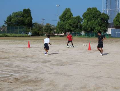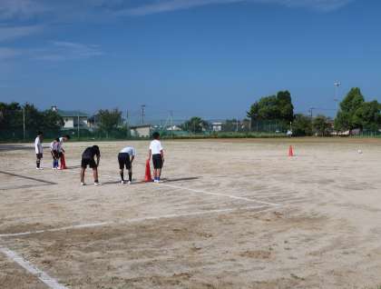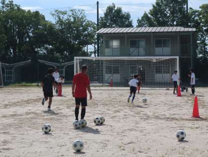 お盆休み明け最初に活動していたサッカー部。休み明けとは思えない切れのある動きとテンポの良い取組に感心しました。