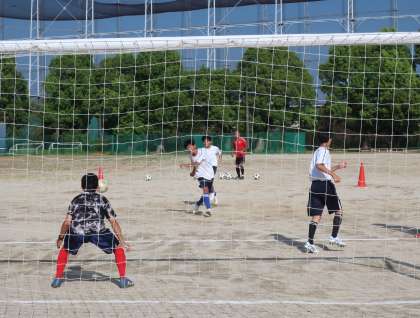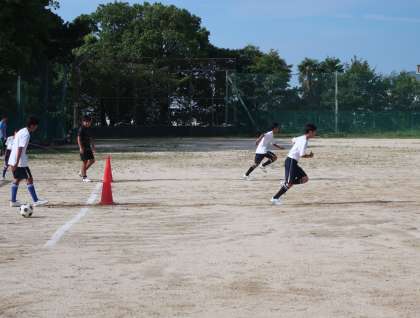 お盆休み明け最初に活動していたサッカー部。休み明けとは思えない切れのある動きとテンポの良い取組に感心しました。