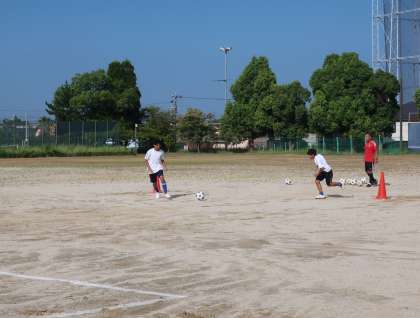 お盆休み明け最初に活動していたサッカー部。休み明けとは思えない切れのある動きとテンポの良い取組に感心しました。
