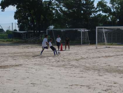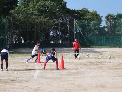 お盆休み明け最初に活動していたサッカー部。休み明けとは思えない切れのある動きとテンポの良い取組に感心しました。