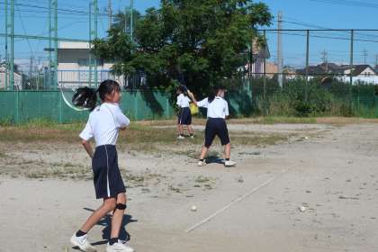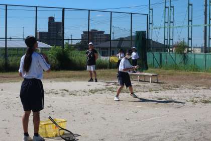 お盆明けの練習に取り組むソフトテニス部の様子です。