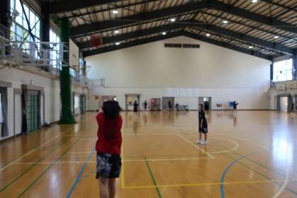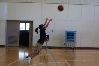 お盆明けの練習に取り組むバスケットボール部の様子です。