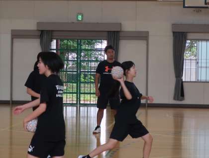 お盆明けから練習に一生懸命励む女子ハンドボール部の様子です。