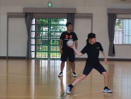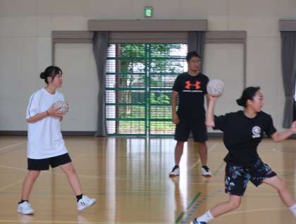 お盆明けから練習に一生懸命励む女子ハンドボール部の様子です。