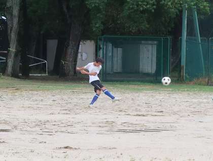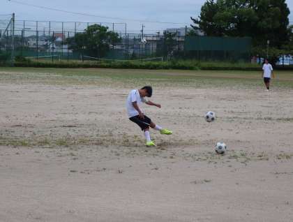 雨があがることを見込んで、前半は屋内でのミーティング、雨があがった後半は運動場でのメニューに取り組んでいました。また、練習の合間を見て、草取りも行ってくれました。