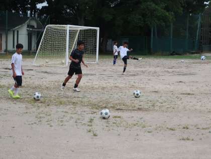 雨があがることを見込んで、前半は屋内でのミーティング、雨があがった後半は運動場でのメニューに取り組んでいました。また、練習の合間を見て、草取りも行ってくれました。