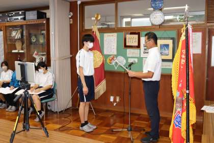 本日1時間目にオンラインで実施された「夏季休業明け全校集会」の様子です。