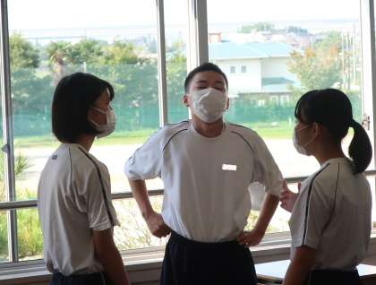 今回のポイントは「メンバーに聞こえる声で話す」でした。夏休みが明け、話したいことがたくさんある今。受験をはじめ進路に関する思いもたくさんあるはず。仲間と今の境遇・心境を分かち合い、学校生活を充実したものにしていこうという雰囲気が表れていました。