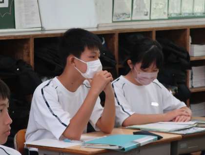 9/5 1-1 会話文の内容を確かめる 2 公開日 2024/09/05 更新日 2024/09/05 各学年から 昨日の1年1組の英語の授業の様子です。 会話の様子から、その内容が正しいものか確かめていました。