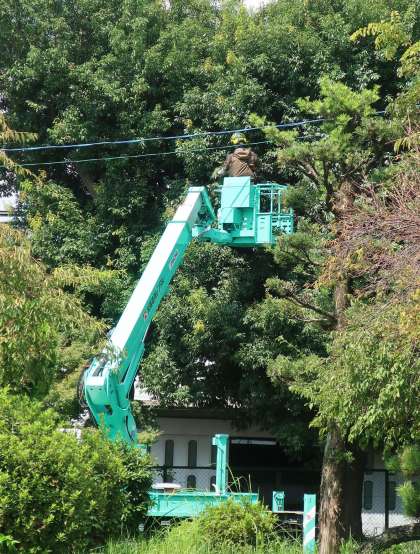 昨日から、電線にかかっている樹木の枝の伐採を業者の方々が行ってくださっています。生徒たちの安全・安心な学校生活のために、丁寧に作業が行われています。