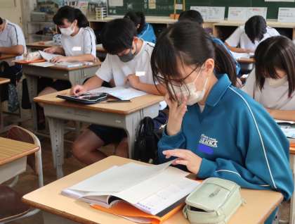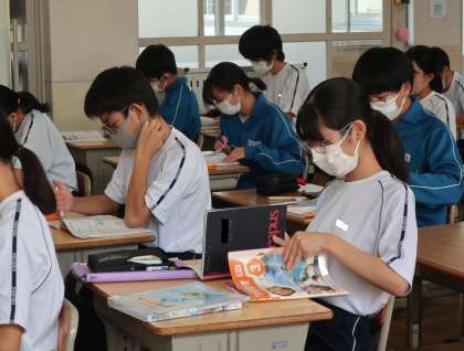 「生命のつながり」の学習で、進化の歴史についてまとめをしながら、学びを深めていました。