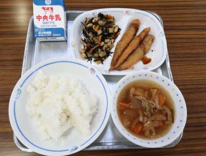 9/10 今日の給食 公開日 2024/09/10 更新日 2024/09/10 特別活動 今日の献立は ————— とうがん汁、ひじきの炒め煮、ししゃもフライ、ごはん、牛乳 でした。 *エネルギー:814kcal たんぱく質:29.1g