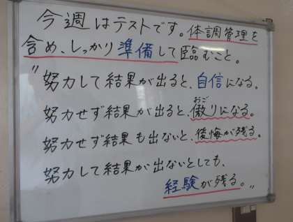 いよいよ今週は定期テストということで、「努力することの大切さ」が記されています。
