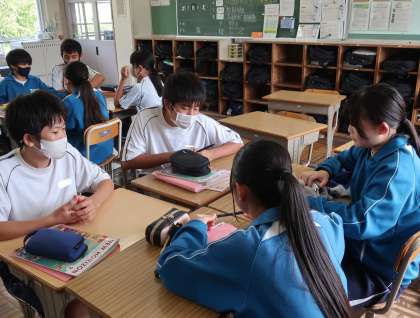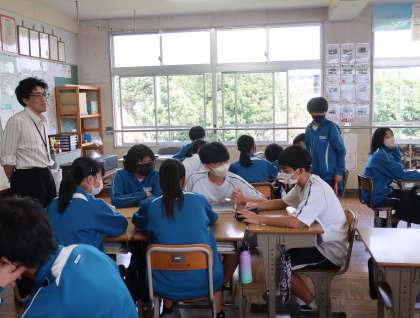 ALT考案のゲームにグループで協力しながら、楽しく活動に取り組んでいました。