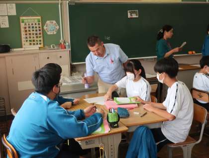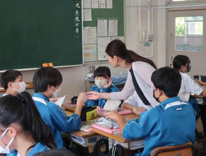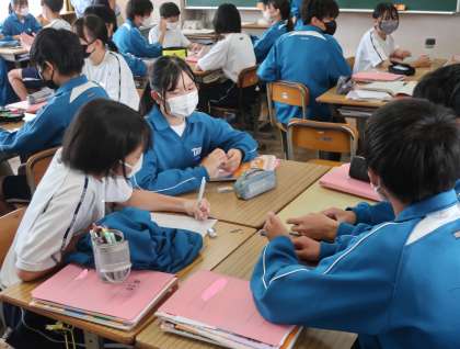 ALT考案のゲームにグループで協力しながら、楽しく活動に取り組んでいました。