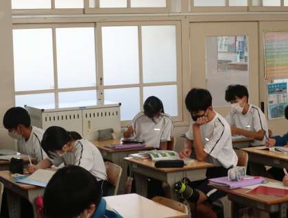 3年1組の社会の授業の様子です。 テスト勉強に一生懸命取り組んでいました。