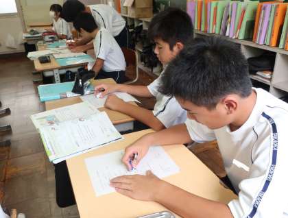 前回の定期テストの反省を生かして、一生懸命テスト勉強に取り組んでいます。