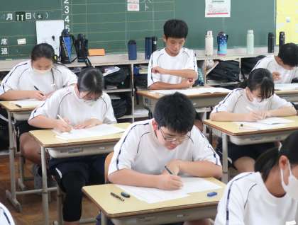 9/11 1-3 第2回定期テスト(1日目) 公開日 2024/09/11 更新日 2024/09/11 各学年から 本日から3日間の日程で始まった第2回定期テスト。 写真は、1年3組の様子です。 夏休みから続けてきた学習の成果が十分に発揮されることを期待したいと思います。