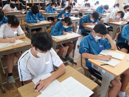 9/11 2-2 第2回定期テスト(1日目) 公開日 2024/09/11 更新日 2024/09/11 各学年から 本日から3日間の日程で始まった第2回定期テスト。 写真は、2年2組の様子です。 夏休みから続けてきた学習の成果が十分に発揮されることを期待したいと思います。