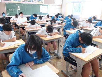 9/11 2-4 第2回定期テスト(1日目) 公開日 2024/09/11 更新日 2024/09/11 各学年から 本日から3日間の日程で始まった第2回定期テスト。 写真は、2年4組の様子です。 夏休みから続けてきた学習の成果が十分に発揮されることを期待したいと思います。