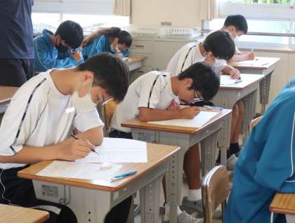 9/11 2-5 第2回定期テスト(1日目) 公開日 2024/09/11 更新日 2024/09/11 各学年から 本日から3日間の日程で始まった第2回定期テスト。 写真は、2年5組の様子です。 夏休みから続けてきた学習の成果が十分に発揮されることを期待したいと思います。