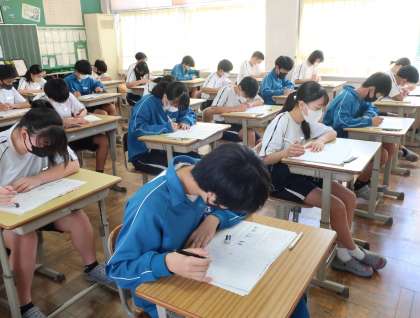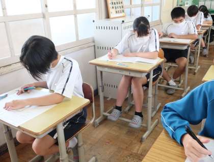 9/11 3-5 第2回定期テスト(1日目) 公開日 2024/09/11 更新日 2024/09/11 各学年から 本日から3日間の日程で始まった第2回定期テスト。 写真は、3年5組の様子です。 来春の進路実現に向け、悔いの残らない取組をしてほしいと思います。