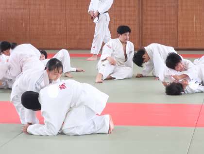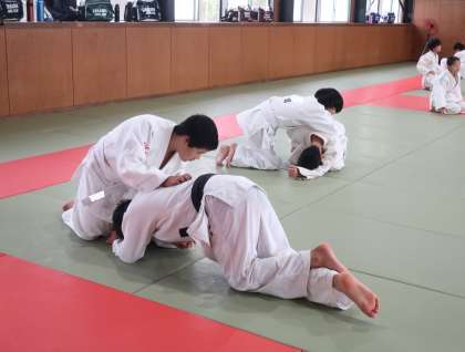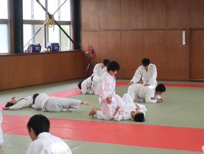 先日引退した3年生も参加していました。後輩の指導であったり、進学後も続けるため技を磨きにやって来ています。1,2年生も良い刺激をもらっているようです。