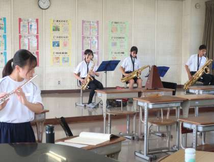 9/15 休日の部活動 23 公開日 2024/09/15 更新日 2024/09/15 特別活動 昨日、校内で行われた部活動・吹奏楽部の様子です。 文化祭での文化部発表かの演奏に向け、本格的に練習に取り組んでいました。