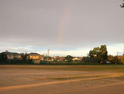 明け方、雨がぱらつきました。その後、雲の隙間から朝日が差し込みました。「もしかしたら…」と思って西の空を見ると、きれいな虹がかかっていました。