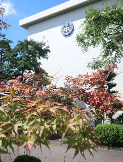 まだまだ厳しい暑さが続きますが、秋の気配を感じる(?)部分が校内にはあります。ただ、実際には日中の気温差によるものではなく、暑さによって葉が色づいているのですが…。