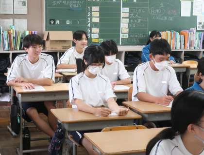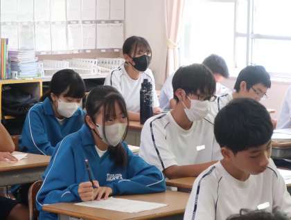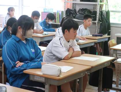 定期テストの返却と解説が行われていました。