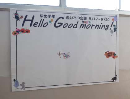 9/17 3年 書記会の企画 公開日 2024/09/17 更新日 2024/09/17 各学年から 3年生が利用する階段の踊り場でに掲示されていたものです。 学校生活を明るく充実したものにしようと、「あいさつ」を意識した生活に今週一週間取り組んでいきます。そういえば今朝、3年生のフロアだけいつも以上に挨拶の声が大きいと感じました。他学年にも良い刺激になることを期待したいと思います。 この掲示物がどんな変化を遂げるかも楽しみです。