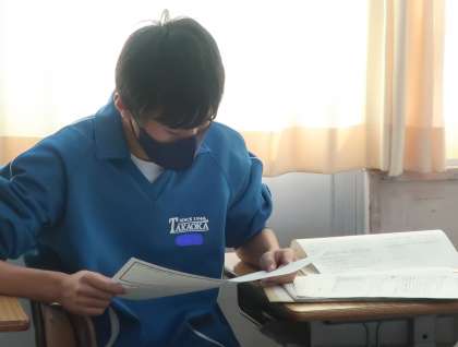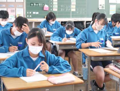 テストが返却され、正解でなかった問題の解き直しが行われていました。