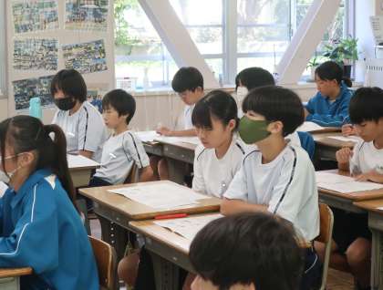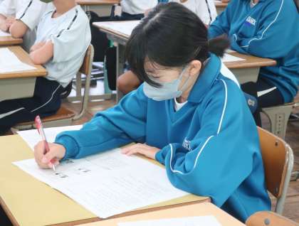 9/18 1-1 これまでの授業を思い出して 3 公開日 2024/09/18 更新日 2024/09/18 各学年から 1年1組の英語の授業の様子です。 テストが返却され、これまでの授業を振り返りながら解説が行われていました。