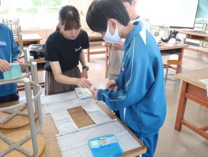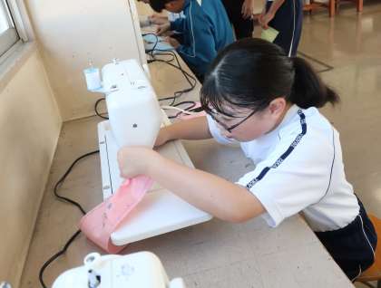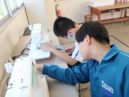 ミシンを使ってのマイバッグづくりに挑戦していました。納得のいく作品を作り上げようと、全員が真剣そのものです。