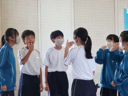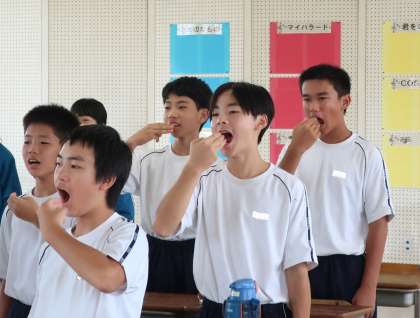 合唱曲の本格的な練習を前に、3つの基本(姿勢・表情・口の開け方)をパートごとに練習し合っていました。