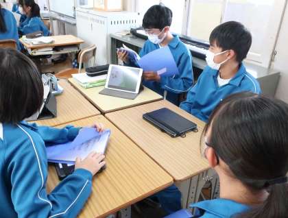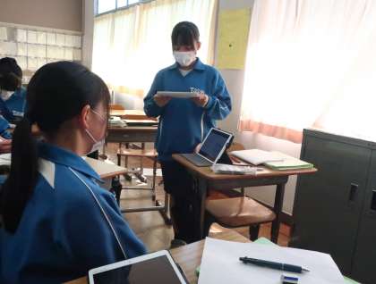 2年3組は午後に行われる「職場体験発表会」に向けて、発表のリハーサルを行っていました。