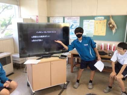 先週末に行われた「職場体験のまとめ発表会」の様子です。