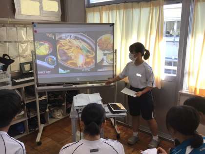 体験の様子をまとめた2年生一人一人が、1年生に向けて自作のパワーポイントを使って発表しています。