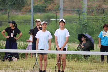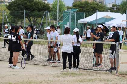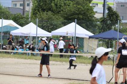 写真は、竜神中学校で行われたソフトテニス部・団体の大会の様子です。