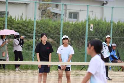 写真は、竜神中学校で行われたソフトテニス部・団体の大会の様子です。