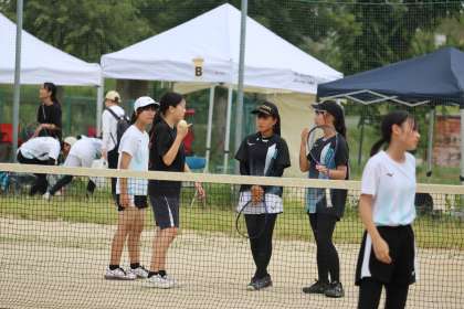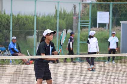 写真は、竜神中学校で行われたソフトテニス部・団体の大会の様子です。