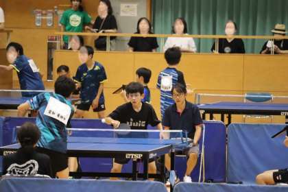 写真は、豊田市運動公園体育館で行われた卓球部・団体の大会の様子です。