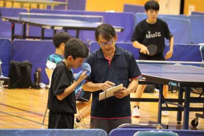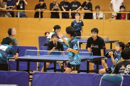写真は、豊田市運動公園体育館で行われた卓球部・団体の大会の様子です。