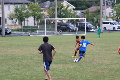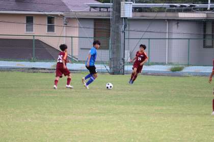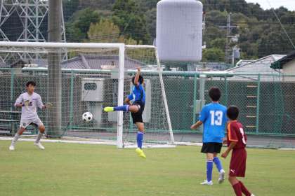 写真は、五ケ丘グランドで行われたサッカー部の大会(交流戦)の様子です。