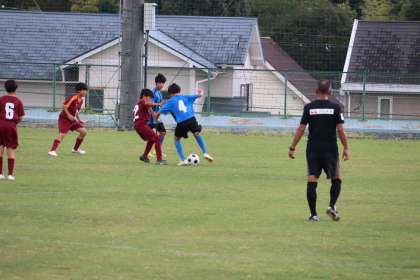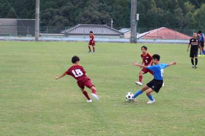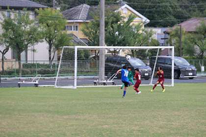 写真は、五ケ丘グランドで行われたサッカー部の大会(交流戦)の様子です。