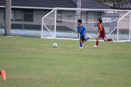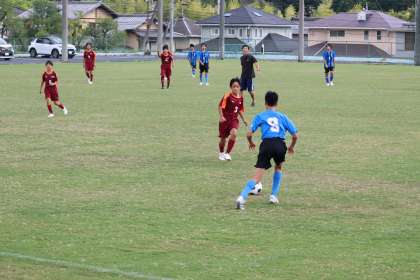 写真は、五ケ丘グランドで行われたサッカー部の大会(交流戦)の様子です。