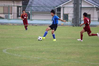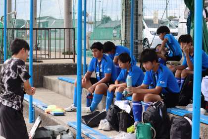 写真は、五ケ丘グランドで行われたサッカー部の大会(交流戦)の様子です。